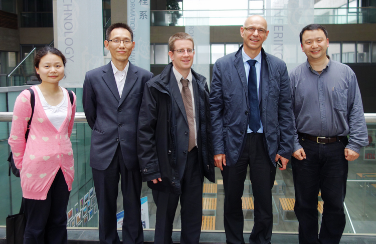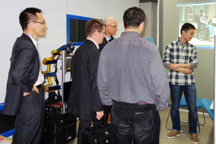 COUTELIER教授等参观了虚拟现实技术工程平台、嵌入式视频监控平台及脑认知与智能系统试验平台,并和平台研究人员进行了交流。随后,双方在305会议室进行了会谈,并表达了在已有框架协议的基础上,切实开展学生互换项目的意愿。
