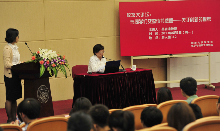 6月3日下午,吴启迪教授来到嘉定校区为获得2011-2012学年启迪奖学金的同学颁奖,并做客校友大讲坛,为师生们带来了精彩的报告《与同学们分享读书感想――关于创新的思考》。校党委副书记李昕、太阳成官网党委书记童学锋、校学生处副处长宋波、校团委书记刘润、校教育发展基金会副秘书长梁春江等领导出席了颁奖仪式。