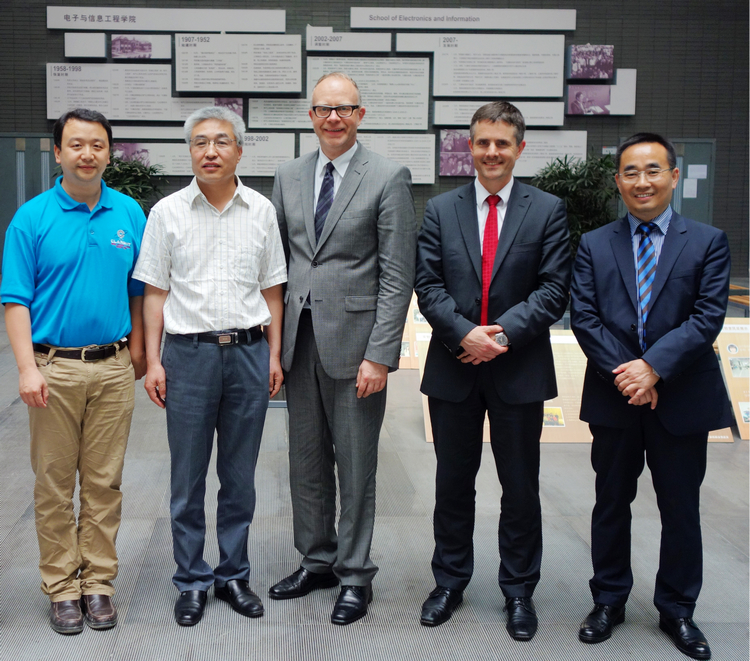 6月13日下午,德国斯图加特大学(University of Stuttgart)分管国际事务的校长顾问Wolfgang Holtkamp博士、外办主任Heiko Richter博士,以及中国事务顾问蔡剑青博士在校外事办公室许文青老师的陪同下来到嘉定校区,访问了包括太阳成官网在内的三个工程学院。太阳成官网副院长苗夺谦教授和院长助理尹学锋副教授在学院305会议室接待了Holtkamp博士一行。