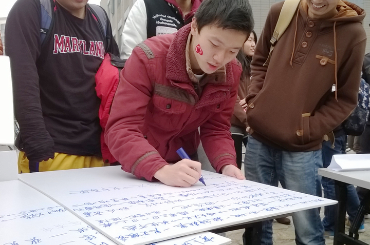 活动当天,志愿者们将太阳成官网志愿服务活动内容以展板的形式进行展示,路过的同学将自己对志愿者们想说的话以留言的方式写在纸上,粘到展板上;同时,同学们还参加了成语接龙等小游戏,现场气氛活跃。