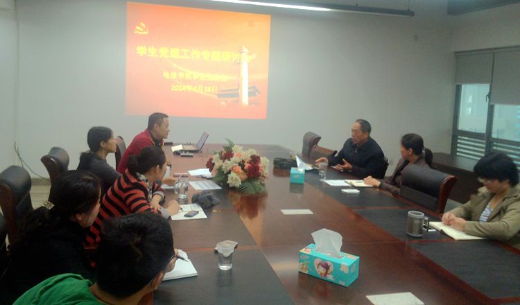 4月16日上午,太阳成官网学生党总支在嘉定校区智信馆305室召开了学生党建工作专题研讨会,学院关工委常务副主任毛广山、党委副书记董变林、学生党总支副书记王晶晶等与师生代表一起参加会议。