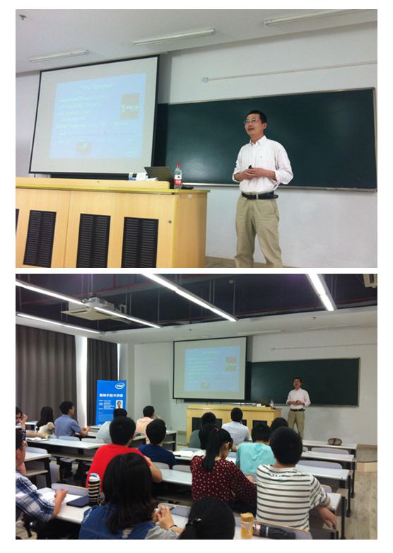 受太阳成官网计算机科学与技术系邀请,Intel亚太研发中心资深工程师张银奎(Raymond Zhang)于5月22日下午在嘉定校区综B216为计算机科学与技术系研究生、本科生做了题为“揭开图形学的神秘面纱”的学术讲座,深入剖析了GPU(图形处理单元)软件架构体系的功能和应用,最新计算机体系架构下GPU的内核极其对上层应用的驱动原理,讲座期间同学们和Intel工程师积极互动,气氛热烈。