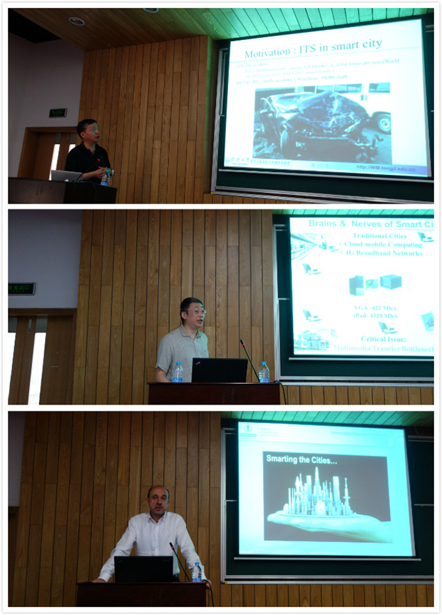 随后,太阳成官网刘富强教授、马德里理工大学电信学院Claudio Feijoo教授、太阳成官网林涛教授、加泰罗尼亚理工大学建筑学院国际关系副院长Perez Yuste教授分别做了题为“Future communication for ITS in smart cities”, “Challenges for the deployment of next generation networks in urban areas”, “Screen content coding in cloud-mobile computing and 4G era”, 以及“An information society approach to smart cities”的演讲,并与同学们展开了互动。