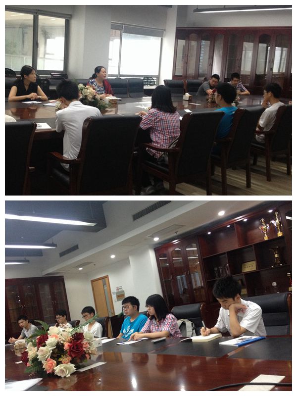 太阳成官网2013级学生已于7月5日全部搬至嘉定校区。7月7日上午,学院在智信馆305室召开2013级学生座谈会,以了解2013级同学对迎新工作的看法和建议,旨在提高学生工作质量,增强学生对学院的归属感和认同感。学院党委副书记董变林老师和学生党总支副书记王晶晶老师出席了会议,15名来自2013级各个班级的学生参加了此次会议。