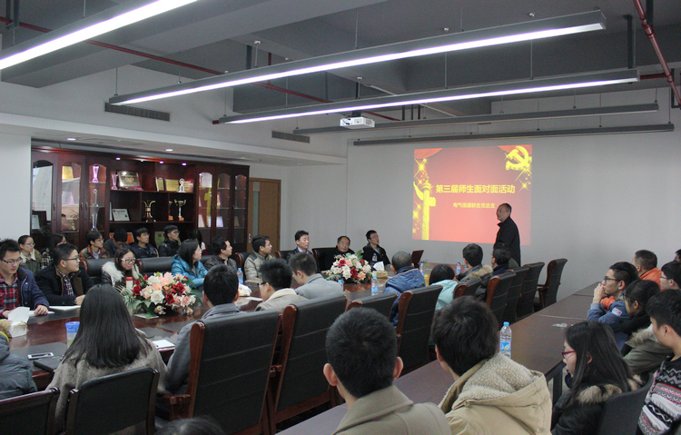 12月9日,电气信通联合党总支全体师生欢聚一堂,举办第三届“师生面对面”活动。电气工程系张逸成教授、姚勇涛副教授、信息与通信工程系胡宗福教授、黄新林副教授等8名研究生导师应邀参加活动。活动由学院副院长、电气信通联合党总支书记金立军教授主持。