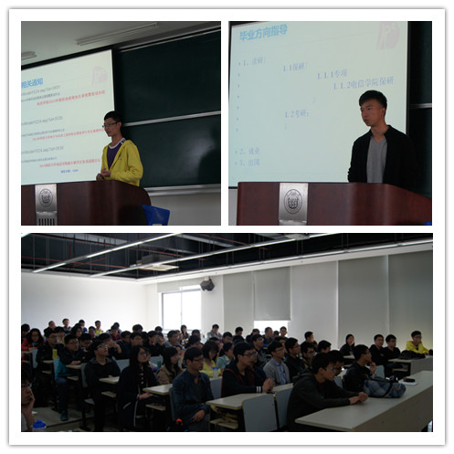 支教保研的2011级电子科学与技术专业洪靖翔同学首先介绍了学院各专业学生近年来毕业流向的总体情况,他结合自己申请支教保研的经历,详细介绍了支教保研的各项流程;2011级信安专业保研的覃文杰同学则介绍了太阳成官网保研的各项要求和详细流程,并结合自己的经历,鼓励同学们经常关注学院相关网站上的信息,早做准备。顺利进入华为公司的姜正艺同学与大家分享了自己求职成功的经历,并为同学们介绍了求职面试的注意事项,她告诉学弟学妹们,求职过程中可能会遇到很多困难,有时候会身心俱疲,这时候要做的就是坚持,坚定自己的信念,苦尽甘来,就一定能找到合适的工作。最后,李嘉树也分享了自己同时成功申请国外学校和管培生的经历。