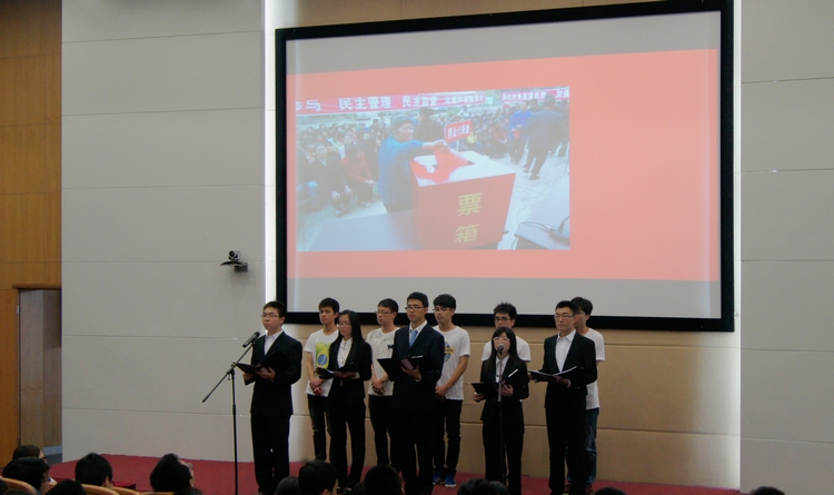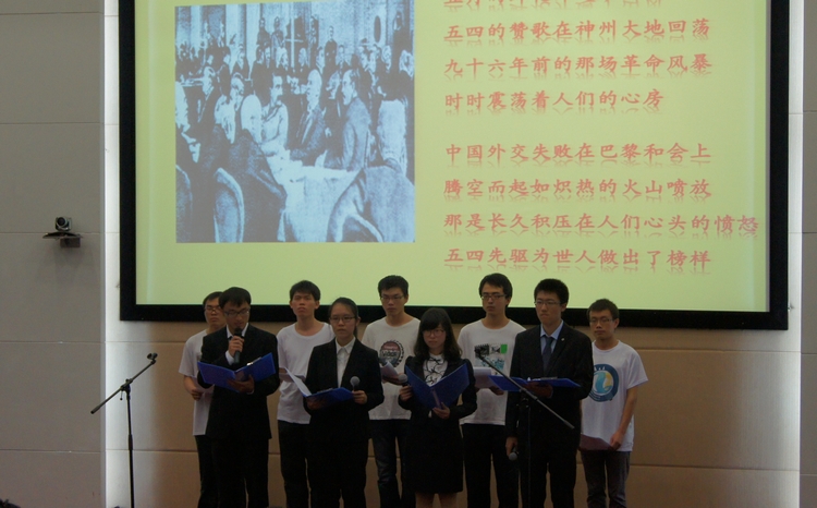 5月19日下午,学院“挥洒感恩诗篇,奏响五四乐章”党员五四诗会在嘉定校区济人楼312室举行,嘉定校区党工委副书记岳继光、校区管委办副主任江鸿波、学院党委副书记董变林和学生党总支的师生党员近200人出席了诗会,共同纪念五四运动96周年,弘扬社会主义核心价值观。