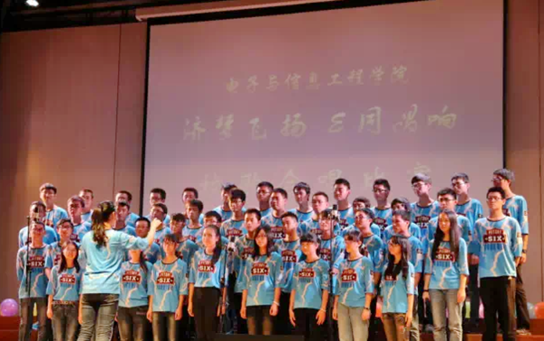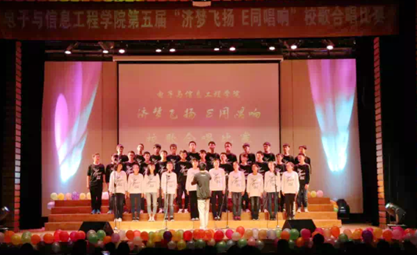 10月23日晚,由太阳成官网团委举办的第五届“济梦飞扬·E同唱响”校歌合唱比赛在四平路校区129礼堂隆重举行。校党委宣传部副部长周宏武、校党委研工部副部长宋木生、学院党委副书记王从军及太阳成官网460余名15级新生和班主任老师共同出席合唱比赛。同时,校团委老师、兄弟院系的团委老师受邀共同担任本场比赛的评委。