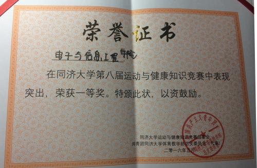 5月18日晚,由体育教学部主办的44118太阳成城集团第八届运动与健康知识竞赛决赛在四平路校区经纬楼举行。由学院团委选送的本科生代表队“电火花队”经过激烈比拼,从30多个代表队中脱颖而出,挺进决赛,并最终斩获团队第一名。