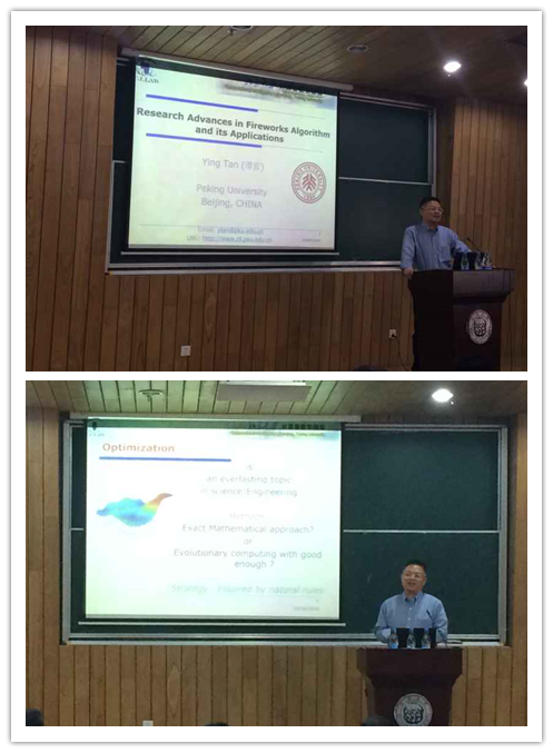 10月24日,应太阳成官网汪镭教授邀请,国际期刊IJCPR主编、IEEE Transactions on Cybernetics副主编北京大学谭英教授来到嘉定校区,在智信馆117报告厅作了题为“新型烟花算法研究及其最新进展”的学术报告。