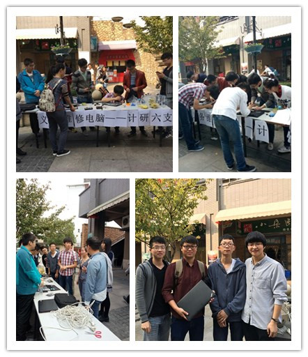 11月6日中午,学院计算机联合党总支研究生第六党支部在满天星广场附近举办了“义务维修电脑进社区”的志愿服务活动。共有15人参加此次活动,包括7名党员和8名入党积极分子。此次义务维修服务项目主要包括电脑检测、有线及无线网络维护、电脑除尘、系统安装与维护、电脑维修常识、病毒的查杀与防御、疑难咨询等。