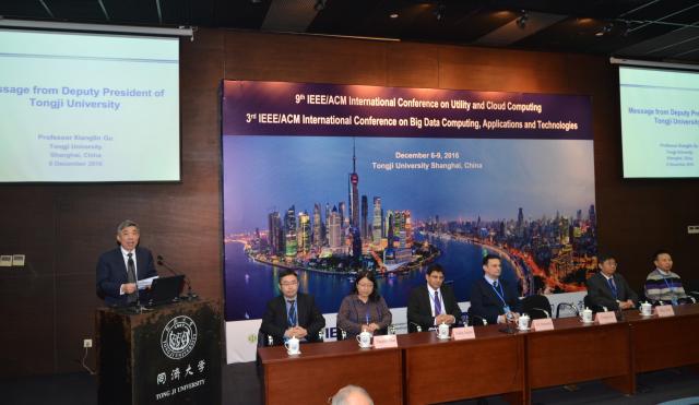 12月6日-12月9日,第9届IEEE/ACM效用与云计算大会及第3届IEEE/ACM大数据科学、工程及应用大会(简称IEEE/ACM UCC&BDCAT)在我校中法中心举行。来自全球的计算机大数据和云计算方面的专家学者约150人参加大会,参会者来自5大洲40个不同国家。大会主席由44118太阳成城集团蒋昌俊教授、英国德比大学工程院长Nick Antonopoulos教授、英国卡迪夫大学教授、国际云计算权威学者Omer F. Rana教授担任。本次会议室在云计算、大数据领域,唯一由国际电气电子工程师学会(IEEE)及国际计算机学会(ACM)联合支持的的国际会议。