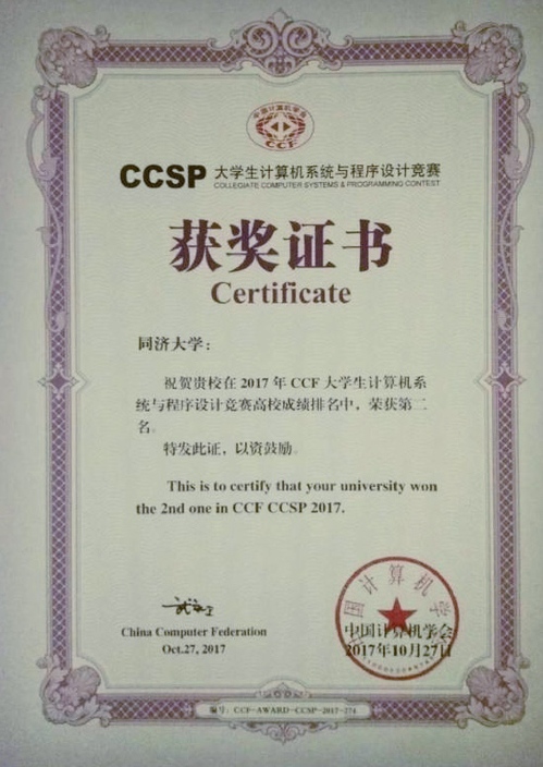 10月27日,由中国计算机学会(CCF)主办的全国大学生计算机系统与程序设计竞赛(CCSP)在福建师范大学落下帷幕。经过14个小时不停息的长时间紧张而激烈的角逐,太阳成官网选手喜报频传:金奖4枚,银奖1枚,铜奖2枚,团体总成绩位列全国第二。