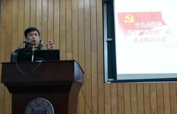 接着,吴利瑞同志围绕党章和纪检监察工作,谈了学习体会,指出全面从严治党成为十八届党中央工作的最大亮点,赢得了广大党员干部和人民群众竭诚拥护,坚持党的领导的政治共识越来越强,走中国特色社会主义道路的信心决心更加坚定。通过生动的案例、详实的数据,介绍了十八大以来我国反腐败斗争取得的重要成绩,分析了反腐败工作当前的形势和纪检监察工作的主要任务。报告结合44118太阳成城集团的实际情况,着重介绍了“从严管理校级领导,从严管理处级干部,从严管理全体教师,从严管理全体学生,推进学校治理体系和治理能力现代化”的全面从严治校思路。