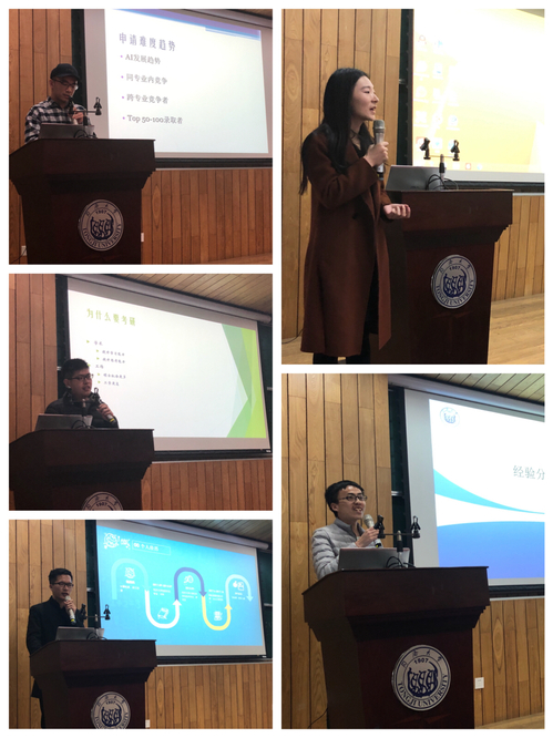 3月23日中午,毕业生求职经验分享交流会嘉定校区智信馆117报告厅举行,2015级赵康兵、刘露茜、张鹏宇、何雨龙、王宇恒5位毕业生代表们受邀分享自己在研究生生涯的成长感悟及求职经历。交流会中,毕业生们分别介绍了自己的就职企业、目标选定过程、求职过程以及求职中需要总结的经验教训,包括初期岗位锁定、相应技术准备、面试过程、笔试过程和最后的offer选定。除了过硬的专业基础知识,还着重强调了信息收集(公司信息、招聘信息)、实习面试经验积累以及联系师兄师姐内推和交流面试经验。分享会共有来自学院大三、大四以及研究生几十名学弟学妹的参与,整场讲座中,大家都畅所欲言,互动热烈。