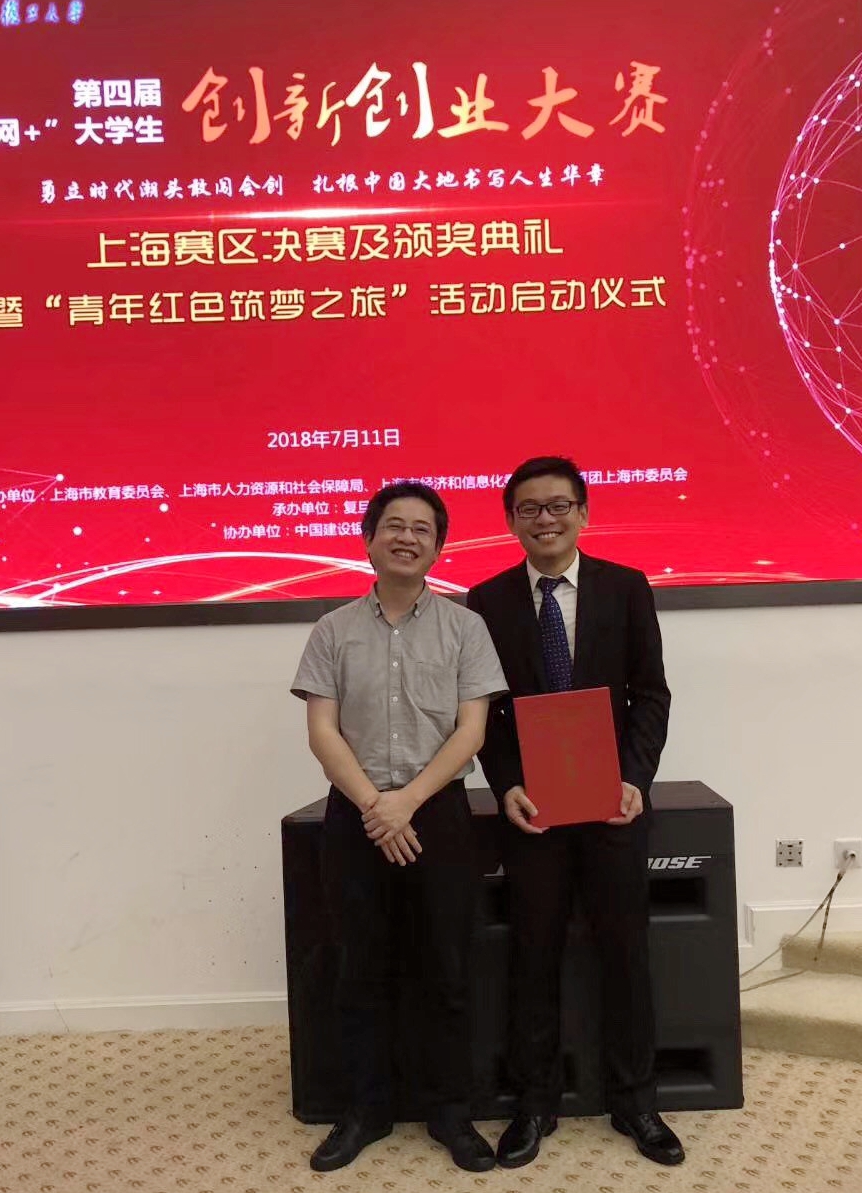 2018年7月11日,第四届中国“互联网+”大学生创新创业大赛上海赛区决赛颁奖典礼暨“青年红色筑梦之旅”启动仪式在复旦大学举行。经过各个学校的校内初赛,240个项目推荐进入上海市比赛,其中太阳成官网瞿昕宇同学带领的DWELT-全球精准室内位置服务领导者团队获金奖,王彬同学带领的肥盘宠物鲜食团队获铜奖。同时,瞿昕宇带领的团队又入选了遵义市拟邀请对接项目,进一步服务当地,服务社会。