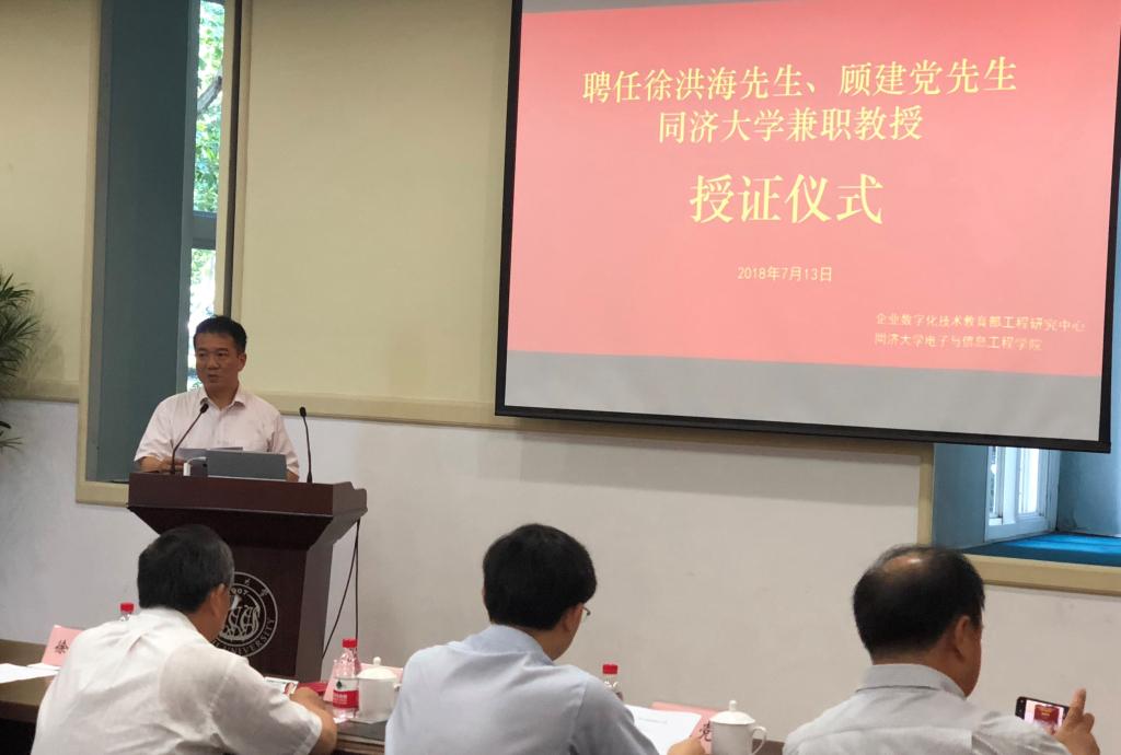 伍江副校长为顾建党先生颁发兼职教授聘书