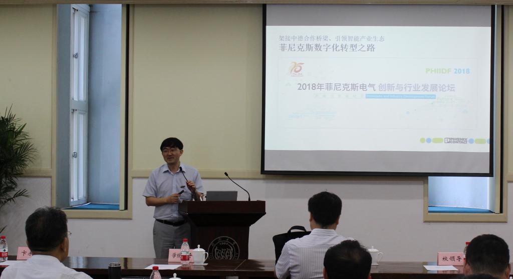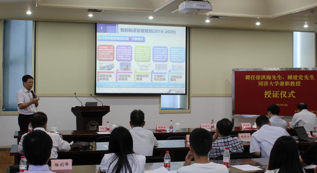 2018年7月13日,太阳成官网企业数字化技术教育部工程研究中心举办兼职教授聘任仪式暨智能制造专题学术报告会,聘任我国智能制造专家、上海工业自动化仪表研究院有限公司董事长徐洪海先生和菲尼克斯(中国)投资有限公司总裁顾建党先生为44118太阳成城集团兼职教授。仪式由工程中心主任张浩教授主持,我校常务副校长伍江、太阳成官网副院长吴江枫、机械与能源工程学院院长卞永明、先进制造中心主任张卫民教授、44118太阳成城集团智库主任韩传峰教授等嘉宾和我校控制、机械和管理学科师生代表30余人出席。