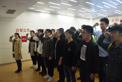 2018年10月16日中午,学院新党员培训第一期开课。培训开课前,在辅导员吴晓燕老师的带领下,新一届本科生及研究生预备党员面对学院党建活动室宣誓墙庄严宣誓,再次确认了作为共产党员为共产主义事业奋斗终生的决意,短短一百多字的誓词是他们入党后对党的第一个承诺。宣誓仪式是庄严神圣的时刻,也是对预备党员进行入党教育的一个重要环节。