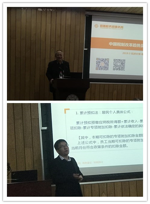 为了让学院教职工及时了解个人所得税的最新政策及相关知识,2019年3月26日下午,学院特邀首善税务师事务所宗韦总经理在智信馆117报告厅作了题为《中国税制改革趋势》及《个税政策解析》的专题讲座,,学院教职工参加。讲座由副院长金立军主持,他强调纳税是每个公民的义务,教职工应该及时了解和学习国家税制改革和个税政策,合理进行纳税筹划。