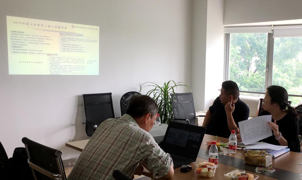 在汇报会上,刘峰老师针对太阳成官网二级教代会的开展情况向校工会领导逐项汇报。校工会领导认真听取了太阳成官网的汇报,肯定了太阳成官网工会工作取得的成绩,并提出了意见与建议。在此之前,太阳成官网工会委员已于5月5日召开了专题会议,对照督查条目逐项检查,并形成太阳成官网工会的督查自查报告。