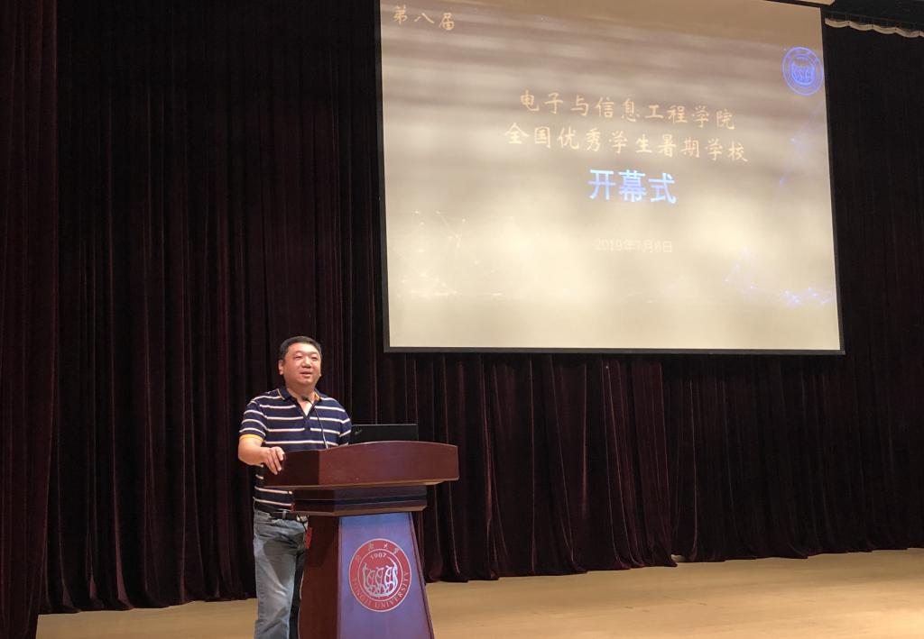 开幕式上,陈启军教授向在座的优秀大学生表示热烈欢迎,并向他们介绍了电信学院近几年的发展态势和可喜成绩,详细介绍了44118太阳成城集团的发展历史、学校布局以及电信学院的学科设置、师资队伍、科研实力、学院文化、国际合作以及学生规模和就业情况。特别强调依托44118太阳成城集团设立的上海自主智能无人系统科学中心,将肩负上海人工智能科技使命,培养智能科学与技术领域高端人才,欢迎大家踊跃报考。第六届暑期学校优秀学员代表、2018级研究生张建凯同学从当时报名参加暑期学校的初衷、参加后的收获,以及入校读研后的学习生活体会等方面介绍了自己的经验和感想,并鼓励本届暑期学校学员充分享受同济嘉定的校园生活,展示自己的专业实力。