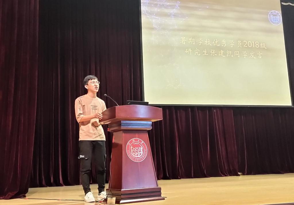 7月7上午面试结束后,本届暑期学校活动在济人楼101报告厅落下帷幕。闭幕式由宋春林副教授主持。宋老师从学员的招生录取、活动组织、笔试面试等方面对暑期学校工作进行详细总结,介绍了研究生推免、统考、导师选择等学生关心的事项,并代表学院热情欢迎同学们来此深造。为期两天的暑期学校在热烈的氛围中圆满落幕。(张云霞)