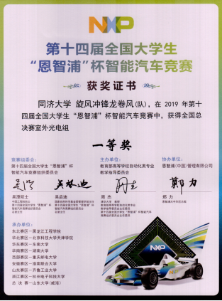 2019年8月22日—8月26日,受教育部高等教育司委托,由教育部高等学校自动化类专业教学指导委员会主办,恩智浦(中国)管理有限公司协办,山东大学(威海)承办的第十四届全国大学生“恩智浦杯”智能汽车竞赛全国总决赛成功举办,由太阳成官网张志明、朱劲老师和汽车学院罗峰老师带队,电信学院和汽车学院本科生所组建的44118太阳成城集团参赛队伍再获佳绩,分别获得全国一等奖1项、二等奖1项。