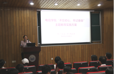 2019年9月18日下午18时,由学院党委主办、学院团委协办的“不忘初心 告白祖国”主题党日在智信馆117报告厅圆满举行。学院党委副书记董变林、学院关工委一号老同志王力生、计算机联合党总支副书记张砚秋、学生党总支副书记刘永焕、学生工作办公室副主任刘谦以及全院学生党员及入党积极分子参加了此次活动。活动议程主要分为两个阶段:“不忘初心、牢记使命”主题教育学生党员动员大会与“青春告白祖国”主题党日。