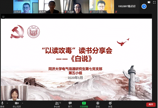 2020年5月19日下午,电气信通联合党总支在Zoom平台开展了“独时宜读,以读攻毒”系列读书活动第五期——《白说》读书分享会。