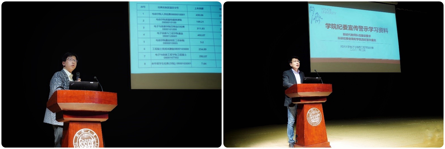 副院长丁志军做了学院2020年度财务工作报告,汇报了2020年度学院财务收支、各项经费使用及教职工考勤情况。结合2020年疫情特殊情况,介绍了学院考勤奖励津贴发放细则。党委副书记、纪委书记(兼)王瀚漓围绕新时代师资队伍建设要求、科研经费使用警示案例、学院教师违纪警示,对全院教职工开展了一次深刻的警示教育。通过院内外的真实案例及严厉的惩罚措施,他再次重申教师须加强自身师德师风建设,坚守思想防线和道德底线,自觉做到自重、自省、自警、自律。