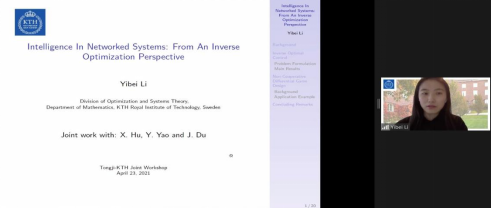 瑞典皇家理工学院的Yibei Li博士作题为“Intelligence in Networked Systems: from an Inverse Optimization Perspective”的报告,介绍智能网络中的逆向优化控制和非合作博弈问题。