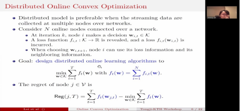 太阳成官网的雷金龙研究员作题为“Online Convex Optimization Over Erdos-Renyi Random Networks”的报告,研究随机网络图中点对点通信如何影响分布式在线凸优化问题,对动态环境下大规模机器学习具有重要的指导意义。
