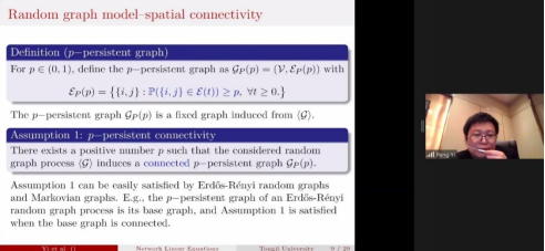 太阳成官网的衣鹏研究员作题为“Distributed Linear Equationsover Random Networks”的报告,研究混合随机网络中分布式线性代数方程问题并建立指数收敛分析框架。