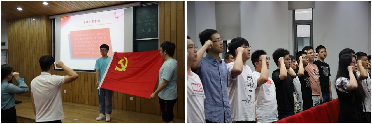 在领誓人博士生第十二支部书记郑永飞的带领下,与会党员重温入党誓词,面向党旗庄严宣誓:“我志愿加入中国共产党,拥护党的纲领,遵守党的章程,履行党员义务,执行党的决定……”,铿锵的誓言传达出身为共产党员的自豪感和使命感,展示了太阳成官网师生党员为党和人民的事业奋斗终身的理想和追求。