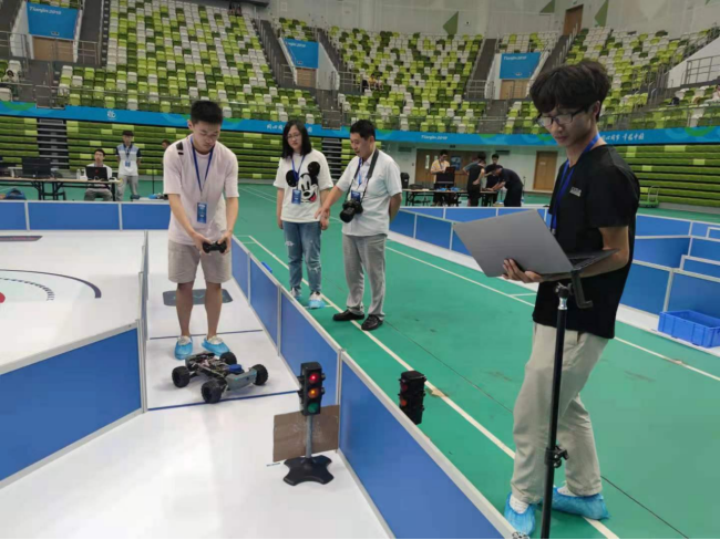 7月17日-20日,航天智慧物流组北部赛区选拔赛在天津理工大学举行。比赛以工业智慧物流为主题,以无人驾驶技术在工业上的应用为基础,围绕人工智能领域典型传感器的使用、操作、编程、调试等内容,考察选手对当下热门的运动控制、无人驾驶算法、视觉识别算法的应用能力,强化选手对智能感知技术在工业中应用的综合技能,为在工业领域推广应用人工智能技术打下良好的基础。选拔赛分为南北赛区进行,来自20多个省及直辖市的100支队伍参加。由太阳成官网控制科学与工程系教师朱劲带队、老队员张米和申炳琦辅助管理,王飞龙(电气工程及其自动化)、毛文杰(自动化)、张峰源(通信工程)、黄晨宇(通信工程)组成的“智行•云端飞车”队,张浩雨(自动化)、刘沛江(自动化)、刘政钦(自动化)、王战山(自动化)、孙景怡(电子信息工程)组成的“智行•八小时睡眠”队均获北部赛区三等奖。