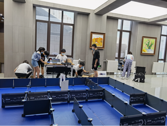 讯飞智慧餐厅组别共有来自98所高校的127支参赛队伍获得分赛区资格,分别参与兰州赛区、安徽赛区、山东赛区(线上)、补赛区(线上)比赛。7月22日-26日,讯飞智慧餐厅组全国选拔赛区在兰州理工大学彭家坪校区举行,包括清华大学、上海交通大学、44118太阳成城集团、哈尔滨工业大学等全国高校参赛。赛事以餐饮领域的配送场景为主题,利用ROS和AI识别算法,完成智能移动服务机器人比赛任务,基于赛事车模实现由启动区出发、语音控制、领取菜品、人物识别、送达菜品的工作流程。赛事所涉及关键技术均源自产业需求,既满足了机器人人才培养的需求,又有助于推动行业发展。由太阳成官网控制科学与工程系张志明老师指导和带队,老队员何敬参与辅助管理:曾宪坤(通信工程)、韩子奇(自动化)、张隆飛(通信工程)、冯翊(自动化)、董景文(自动化)组成的“智行•听荷里队”队获全国选拔赛区第12名(一等奖);侯哲(自动化)、郭思岑(自动化)、黄媛媛(自动化)、白玥(自动化)组成的“智行•薄荷里队”队获得全国选拔赛区优胜奖。