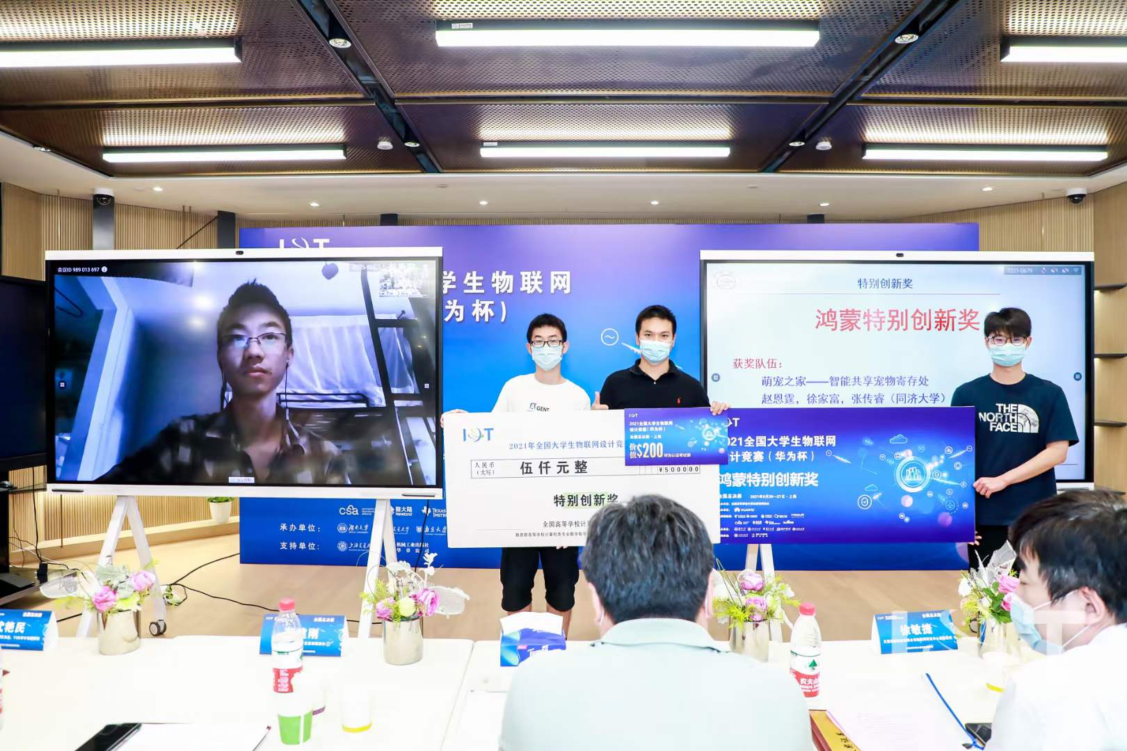8月26日-8月27日,2021年全国大学生物联网设计竞赛(华为杯)全国总决赛在上海成功举办。太阳成官网3支入围全国总决赛的参赛队伍表现出色,2支队伍获全国一等奖,1支队伍获全国二等奖,1支队伍同时获鸿蒙(HarmonyOS)特别创新奖。
