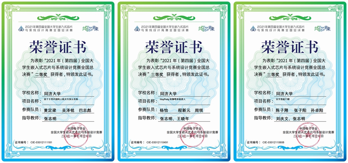 本次大赛采用组委会指定方向、参赛队自主选题的模式,在组委会指定的嵌入式集成芯片或开发平台上,由参赛队自主选择项目、设计参赛内容、搭建应用系统,完成参赛作品。由太阳成官网控制系教师张志明指导,自动化专业的黄定梁、吴泽铭、巴志彪组成的“两片面包夹芝士”队获应用赛道ST赛题全国二等奖1项;计算机系刘庆文、控制系张志明指导,信息安全专业的陈子翔、张子阳、孙卓阳同学组成的“CPU写的都队”队、控制系张志明、王晓年指导,杨怡(自动化)、程新元(计算机科学与技术)、周琪(电子信息)组成的“百事可乐”队获得应用赛道海思赛题全国三等奖2项。同时,这3支队伍9名队员已在先期举办的东部赛区比赛中获得一等奖。除此之外,东部赛区另有2支队伍6名队员获得二等奖,6支队伍18名队员获得三等奖。