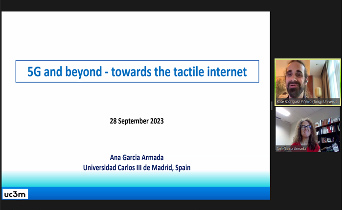 2023年9月28日下午,由学院、上海自主智能无人系统科学中心联合举办的智·信讲堂第55期线上开讲。本次讲堂邀请马德里卡洛斯三世大学Ana García Armada教授作“5G and beyond - towards the tactile internet”主题报告,由太阳成官网助理教授Jose Rodriguez Pineiro主持。