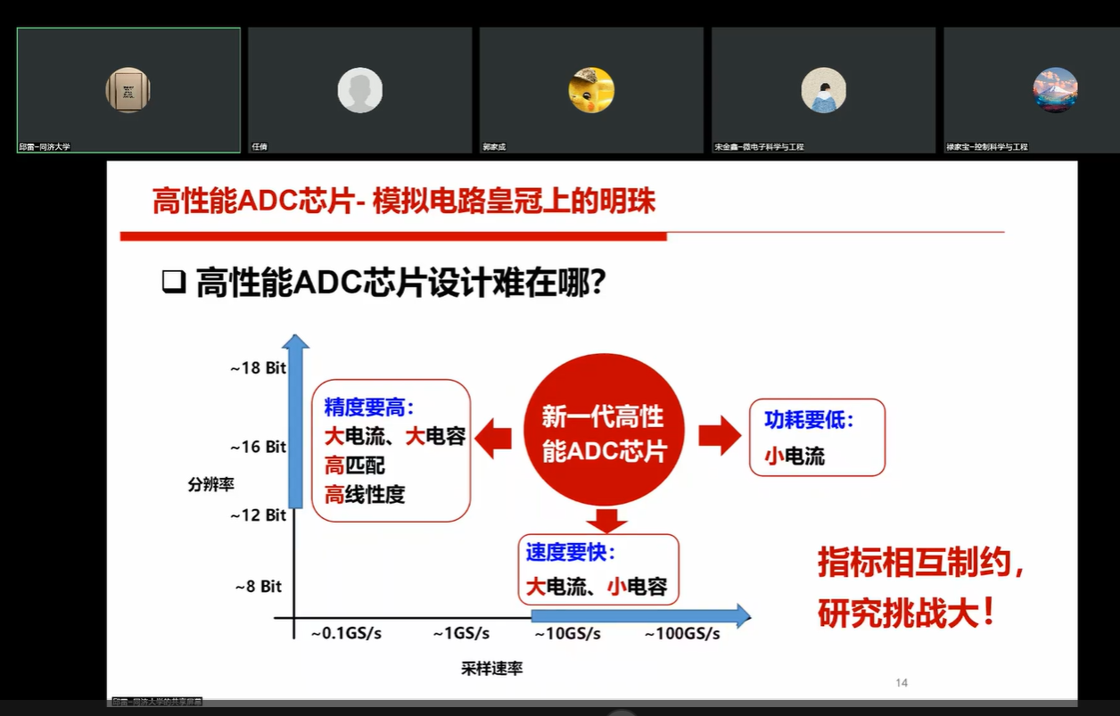 邱雷教授详细探讨了几种高性能模数转换器芯片的设计实例,引发了听众们的极大兴趣和探讨。他特别介绍了250MS/s 12-bit SAR ADC、1MS/s 16-bit SAR ADC以及1GS/s 8-bit SAR ADC的设计流程和思考过程。每一个设计案例都展示了在面对高速、高精度要求时,工程师们如何通过创新的设计理念和精湛的工艺技术,实现了技术的飞跃和突破。