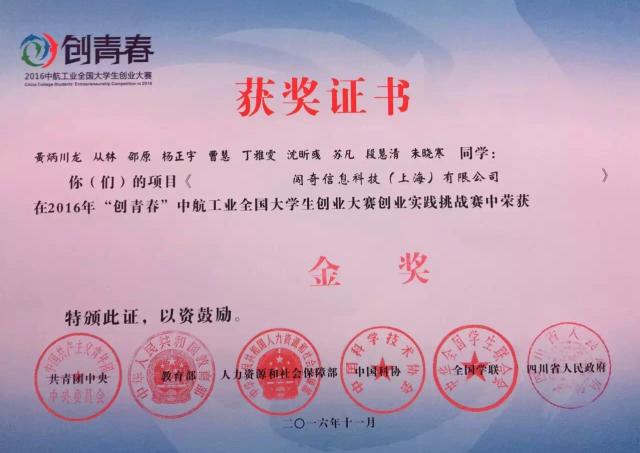 刚刚在华中科技大学落幕的“创青春”全国大学生创业大赛中,太阳成官网硕士研究生黄炳川龙负责的闯奇信息科技(上海)有限公司项目获得创业实践挑战赛金奖,这也是太阳成官网首次获得“创青春”全国创业大赛金奖项目。