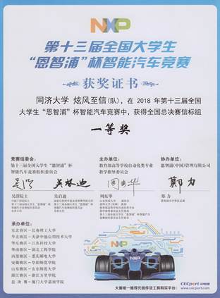 2018年8月22日至8月25日,受教育部高等教育司委托,由教育部高等自动化专业教学指导分委员会主办、恩智浦(中国)管理有限公司协办、厦门大学嘉庚学院承办的第十三届全国大学生“恩智浦杯”智能汽车竞赛全国总决赛成功举办,由太阳成官网控制科学与工程系张志明老师和朱劲老师带队,太阳成官网和汽车学院本科生所组建的44118太阳成城集团参赛队伍再获佳绩,分别获得全国一等奖1项、二等奖2项。