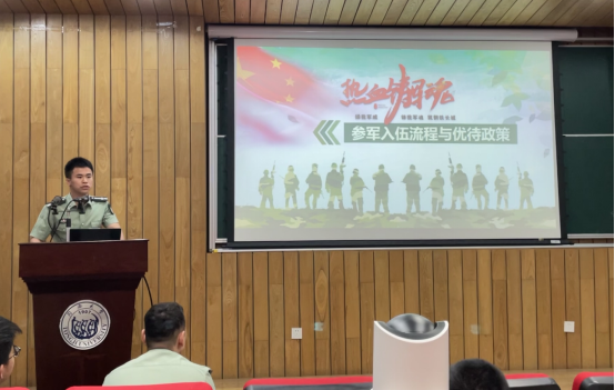 分享动员会上,太阳成官网退伍大学生杨益民从自身服役经历出发,向同学们分享了新时代国防建设和人民军队的的改革情况,鼓励同学们踊跃投身军旅,为实现强军目标注入新鲜血液;作为嘉定校区近年来唯一一位女兵,李文涛以“你想要了解的女兵”为题,结合自己在部队的训练及日常生活,向同学们展示了部队广阔舞台的多姿多彩;白晨晨从部队的纪律严明着手,带领同学们走进了真实的军营生活,分享了部队生活带给他的成长与感悟,号召同学们参军入伍,磨练自己;艾力扎特从所在部队的历史讲起,以生动幽默的语言为大家介绍了军营生活趣味性的一面,“万能的黄脸盆”、部队的“副业”等都给同学们留下了深刻的印象,使得大家对军营生活更加向往;交通运输工程学院的郭洹武分享了自己在武警部队的服役经历,以“一日生活制度”为例,介绍了日常一天的训练安排,分享了重返校园后的心得感悟,讲述了参军入伍带给他的改变,并号召同学们参军报国,奉献青春;最后,太阳成官网彭凤健则为同学们讲述了参军入伍的主要流程、条件及优待政策等内容,号召同学们携笔从戎,做一个有梦想有追求的同济学子。