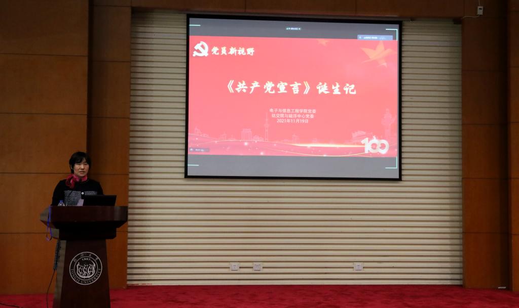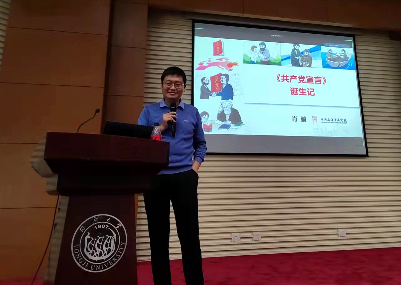 为深入学习习近平总书记“七一”重要讲话精神,在学思践悟中成长,在知行合一中前行,进一步学习马克思主义经典著作《共产党宣言》,感悟思想伟力,坚定理想信念,2021年11月19日下午,学院党委联合轨交院与磁悬浮中心党委在嘉定校区同心楼224报告厅举办题为“《共产党宣言》诞生记”的党员新视野专题党课,上海市委党校肖鹏老师受邀来校。专题党课由学院学生党委副书记刘永焕主持,学院党委副书记张南华、辅导员党史学习第六小组成员和学生党员、入党积极分子近300人线下线上参加了党课学习。