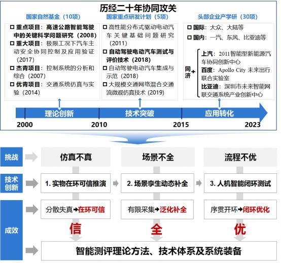 该项目在国家重点研发计划、基金委重大项目等支持下,与中国汽车技术研究中心有限公司、上海汽车集团股份有限公司、比亚迪汽车工业有限公司等深度合作,自主研发了自动驾驶测评新方法、新技术、新装备,实现了测试工具“从分散失真到在环可信”、测试场景“从有限采集到泛化补全”、测评方法“从序贯开环到闭环优化”三大突破。培养了涵盖智能科学与技术、控制理论与工程、车辆工程、交通运输工程等跨学科科研团队,成果应用于企业的研发测试、认证测试以及运行测试,大大降低了测试成本,社会效益显著。不仅彰显了陈虹教授团队在自动驾驶测评技术领域的创新精神和科研实力,也体现了跨机构合作在推动科技进步中的重要价值。