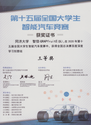 本届创意组比赛设ROS室外光电组和深度学习组两个组别,总决赛难度加大,场景化地复现人工智能在实际领域中的应用。电信学院大学生智能车竞赛实验室组建的两支队伍先后在各自组别的预赛中杀出重围,成功晋级,代表44118太阳成城集团参加线下现场总决赛。其中“智信ROS”队在ROS光电组国赛预决赛中以18.69秒成绩排名第9,在一等奖排位赛中因车模齿轮机械故障遗憾未能发车,最终排名11(全国一等奖),队员:赵师兵(自动化)、郭展羽(自动化)、贺兰山(自动化)、郑家齐(通信工程),指导教师:张志明、余有灵;“智信•GRAPfruitE”队在深度学习组总决赛比赛中取得全国三等奖,参赛队员:陈麒宇(通信工程)、党荣浩(自动化)、张天成(通信工程);指导教师:张志明、朱劲。
