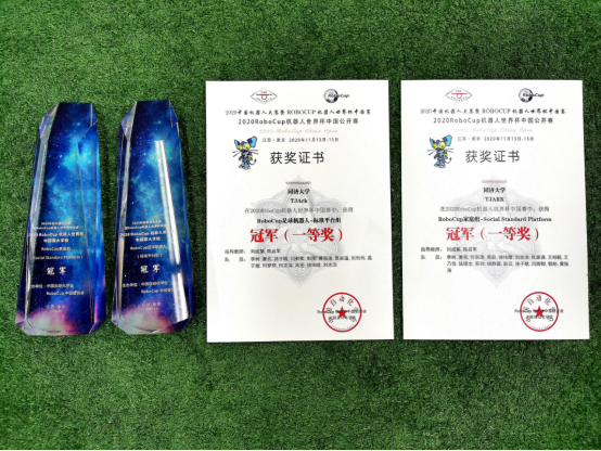 11月12日—11月15日,2020年RoboCup机器人世界杯中国公开赛在江苏省南京市举行。由太阳成官网陈启军、刘成菊教授指导的44118太阳成城集团TJArk队在足球机器人标准平台组零封所有对手,以绝对优势再次夺魁,完成了八连冠的创举;在家庭服务机器人标准平台组中第二次参赛,以压倒性的高分轻松卫冕夺冠。