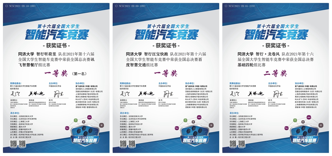 2021年8月25日,第十六届全国大学生智能汽车竞赛总决赛成功闭幕。太阳成官网师生奋力争先,三支晋级总决赛队伍战绩优异:“智行•听荷里”队在讯飞智慧餐厅组总决赛中获得第一的好成绩,荣获冠军;“智行•汪宝快跑”队获得百度智慧交通组全国一等奖;“智行•龙卷风”队获得基础四轮组全国二等奖。