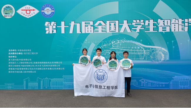 太阳成官网大学生创新基地智能车竞赛实验室组织并指导的四支队伍经过分赛区选拔后晋级总决赛,总决赛由太阳成官网控制科学与工程系张志明老师领队,老队员刘梦晓、周庚栋等同学参与辅助管理,最终参赛队伍在总决赛中全部获奖。由张志明老师指导,本科生付思涵(自动化)、吴玙汐(微电子科学与工程)、曾崇然(计算机科学与技术)、邓子豪(微电子科学与工程)组成的睿行•迩复广华队获得百度智慧交通创意组全国一等奖(第8名),牛禄阳(计算机科学与技术)、徐存阳(自动化)、邵琳博(计算机科学与技术)和华洲琦(计算机科学与技术)组成的睿行•DoveSmart队获得地平线智慧医疗创意组全国一等奖(第13名)。由张志明、朱劲老师指导,秦光辉(自动化)、景颢(自动化)、刘熠(通信工程)组成的睿行•大猫圆舞队取得摩托组全国二等奖,任昱扬(自动化)、敖思瑾(信息安全)、张冬雪(通信工程)组成的睿行•追光逐影队获得镜头STC组全国二等奖。此外,王赛君(自动化)参加汽车学院队伍获得模型组一等奖(第12名)。